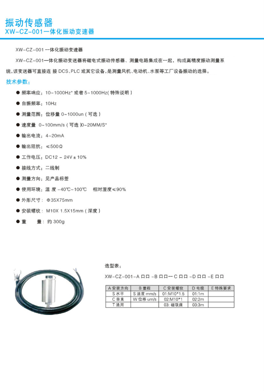 振動傳感器振動一體化變速器XW-CZ-001